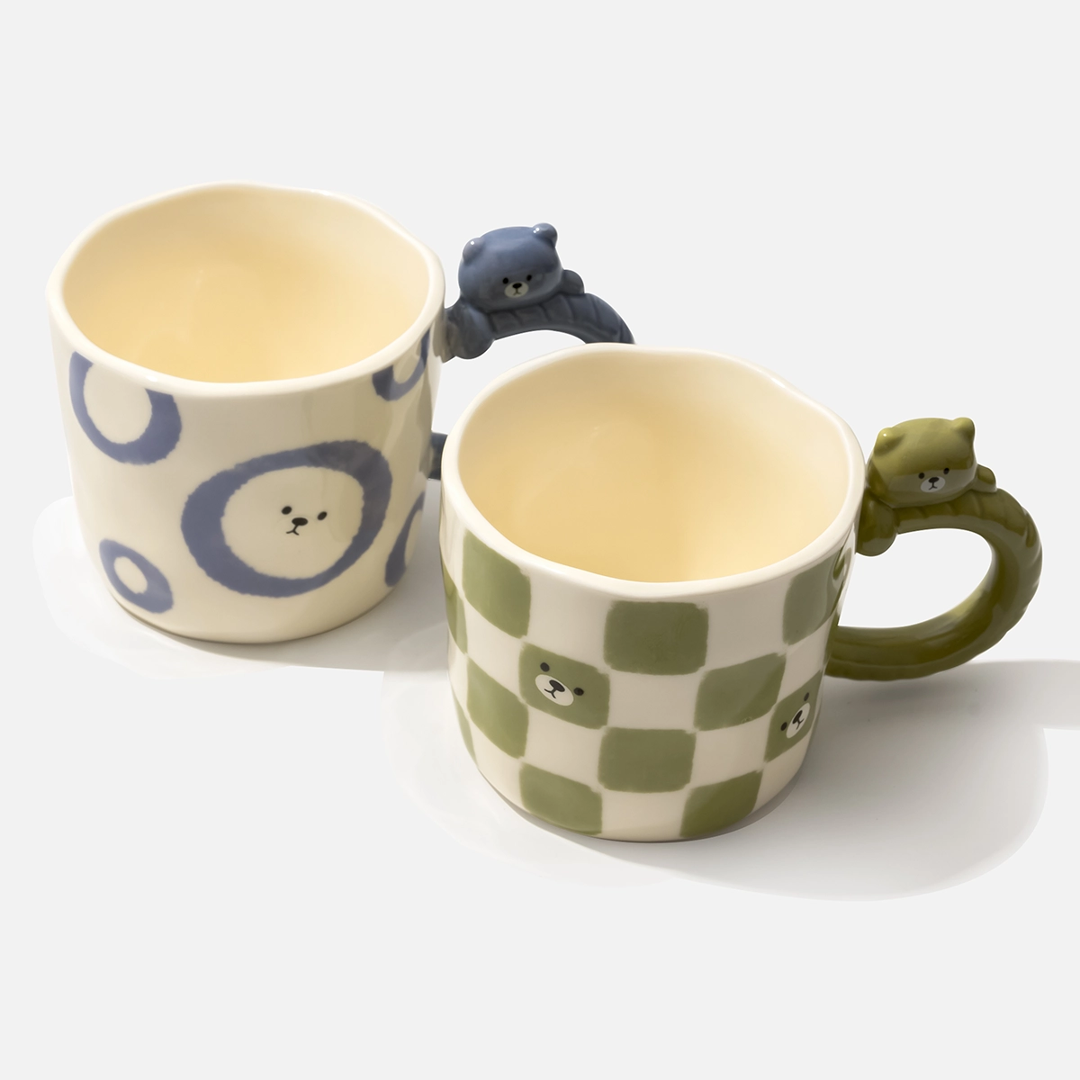 Bear Handle Ceramic Mug Set – Blue & Green