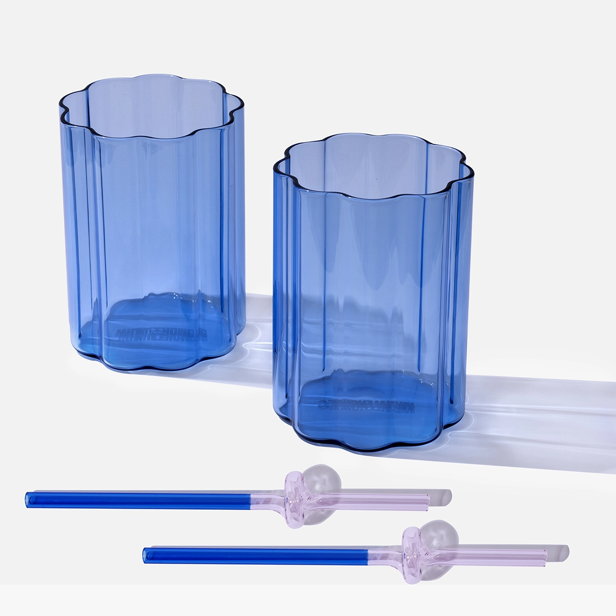 Blue Ripple Glass cup x 2 + Glass Straws, Gift Ready For Valentine’s Day