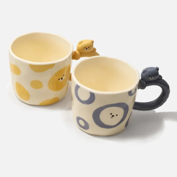 Bear Handle Ceramic Mug Set – Pink & Yellow