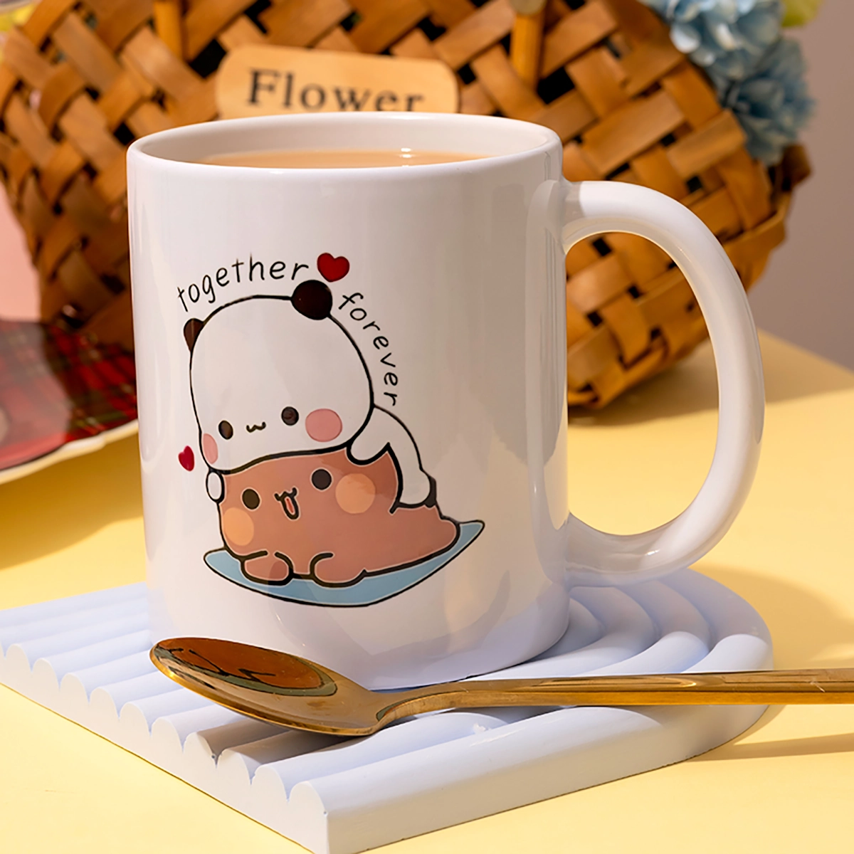 Celebrate love and everyday moments with this adorable “Together Forever” Couple Mug Set, the perfect gift for couples, best friends, or anyone who makes your heart smile. Each set includes two high-quality ceramic mugs featuring a charming illustration of two cuddly characters cuddling with tiny hearts and the words “together forever”—a sweet reminder that love and friendship last a lifetime.
