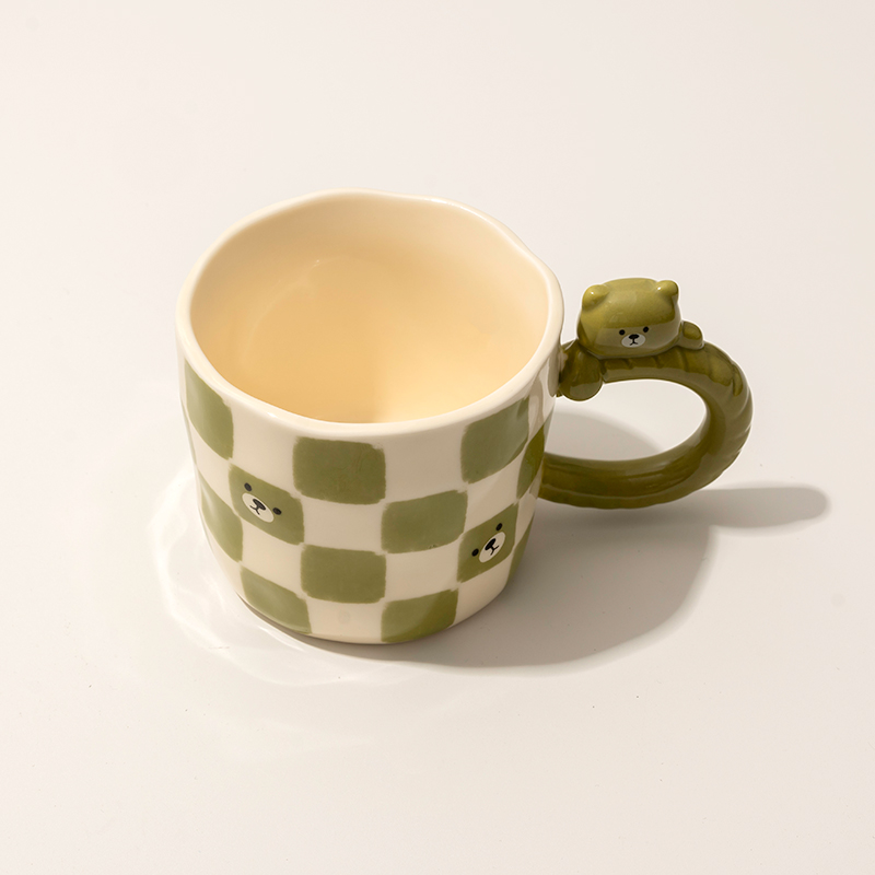 Green Bear Mug With Handle– Ceramic Bear Lover Christmas Gift, Presents for Kids