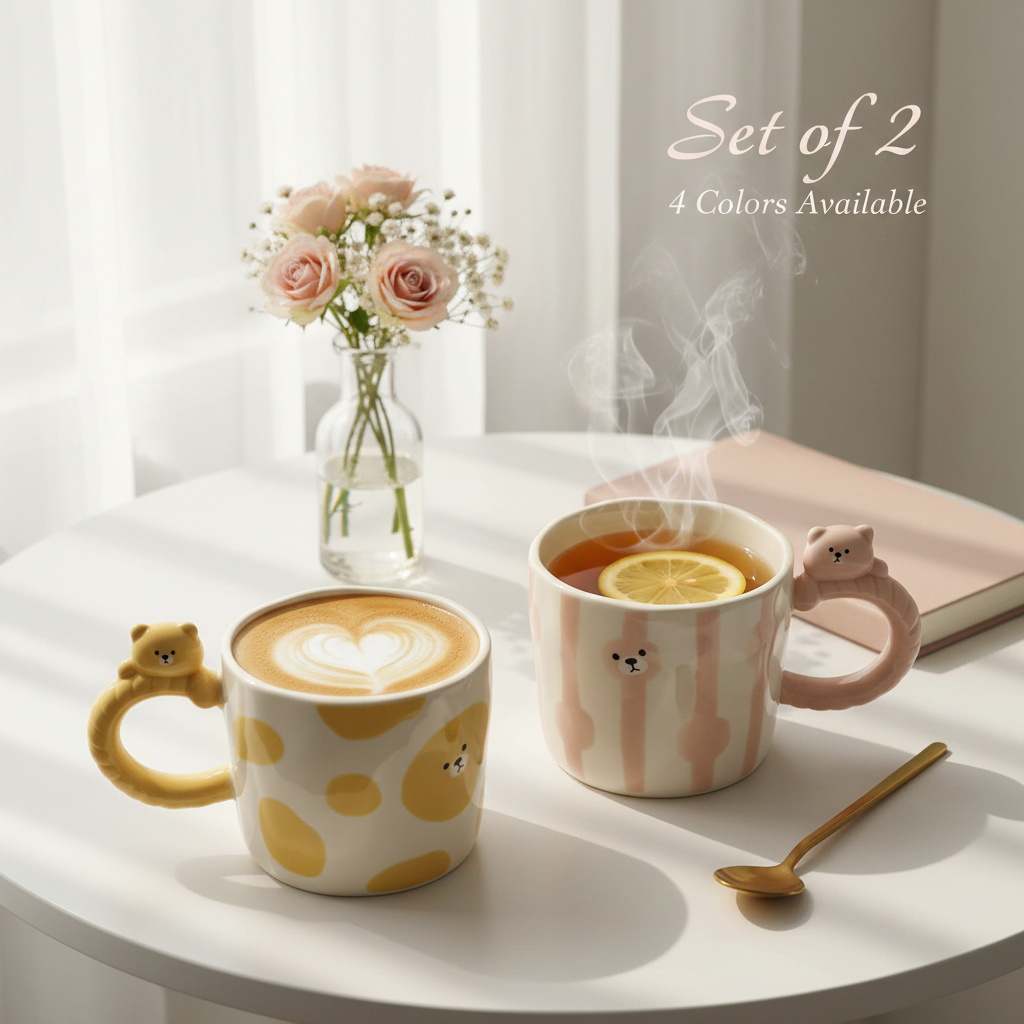 • Adorable 3D Bear Handle – Cute sculpted handles add playful character to each mug