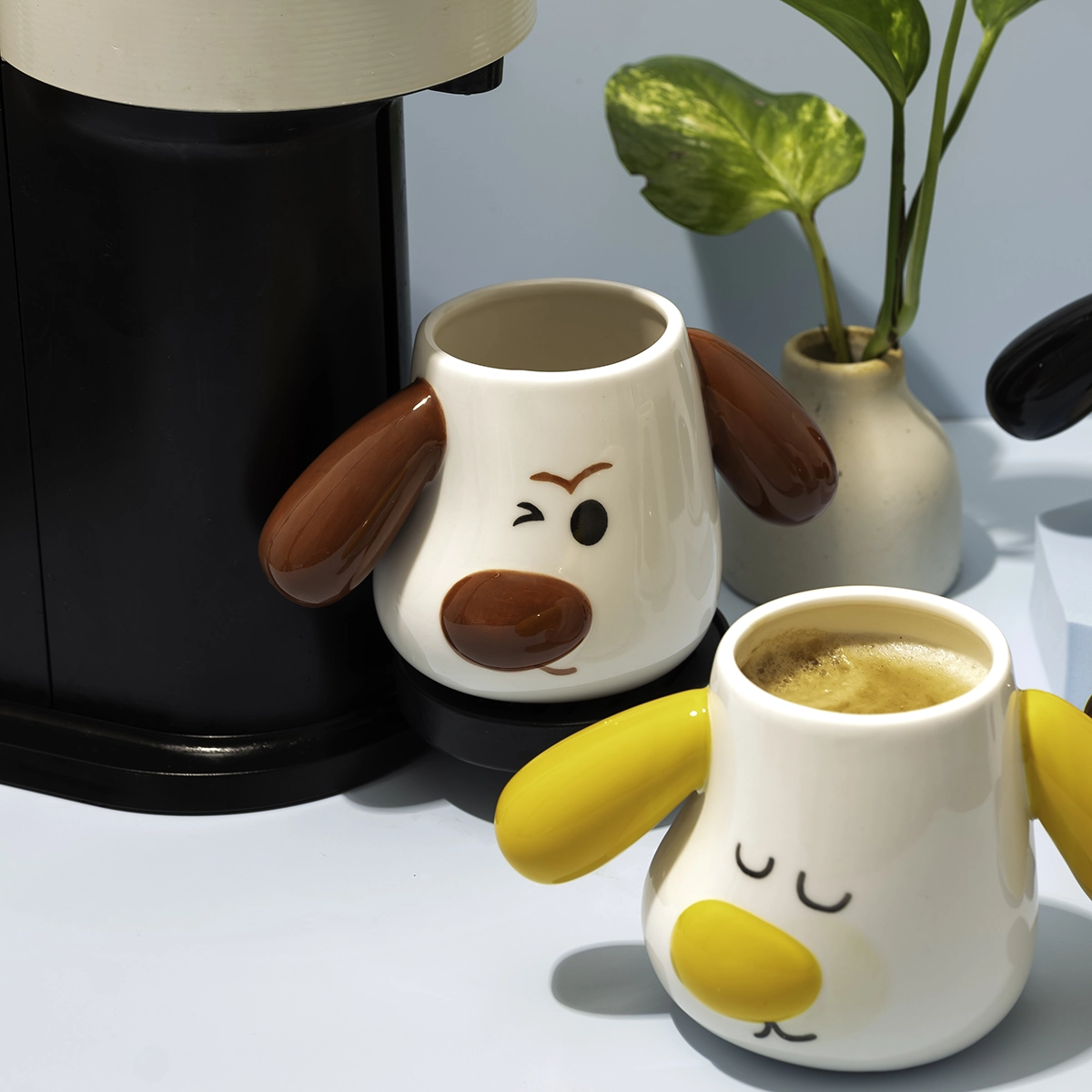 The yellow and red puppy shaped mug set is all about joy and warmth. With cheerful colours and an irresistibly cute design, this set instantly lifts the mood. Crafted from ceramic for everyday use, these mugs are perfect for morning coffee, afternoon tea, or gifting to someone who loves colour and personality in their home.