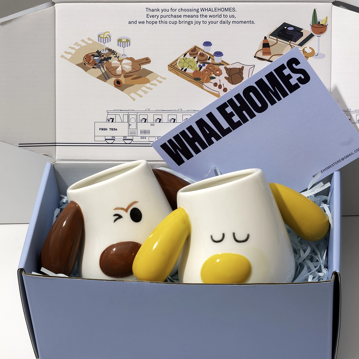Bear Handle Ceramic Mug Set – Blue & Yellow