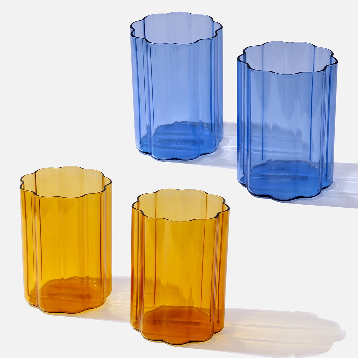 Valentine’s Ripple Glass Cup Bundle – 4 Pack Amber & Blue Glassware