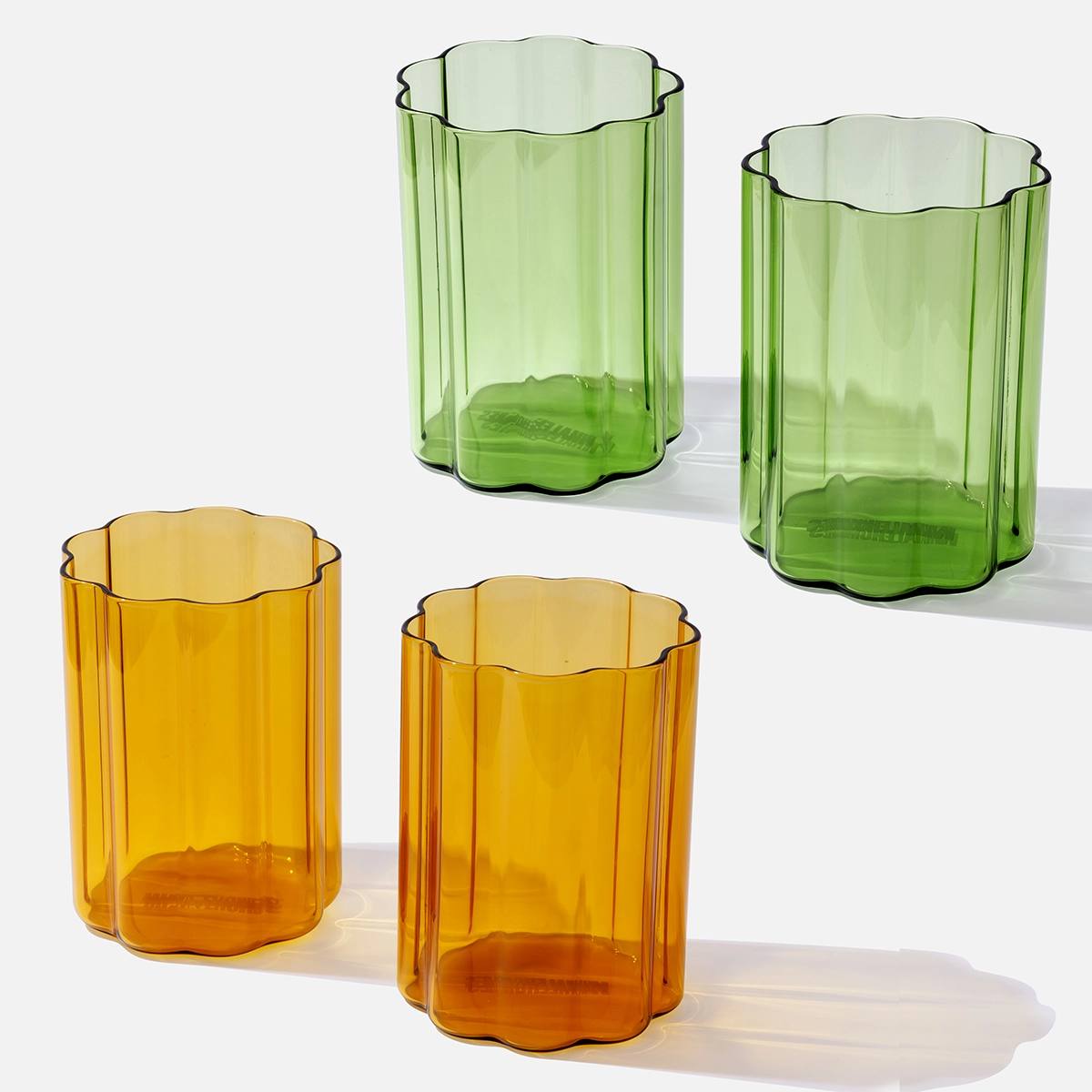 Valentine’s Ripple Glass Cup Bundle – 4 Pack Amber & Green Glassware